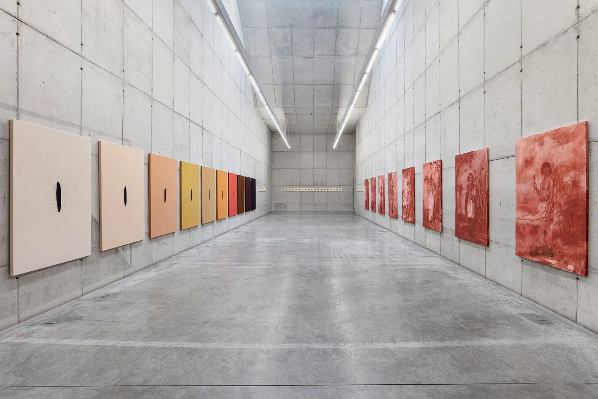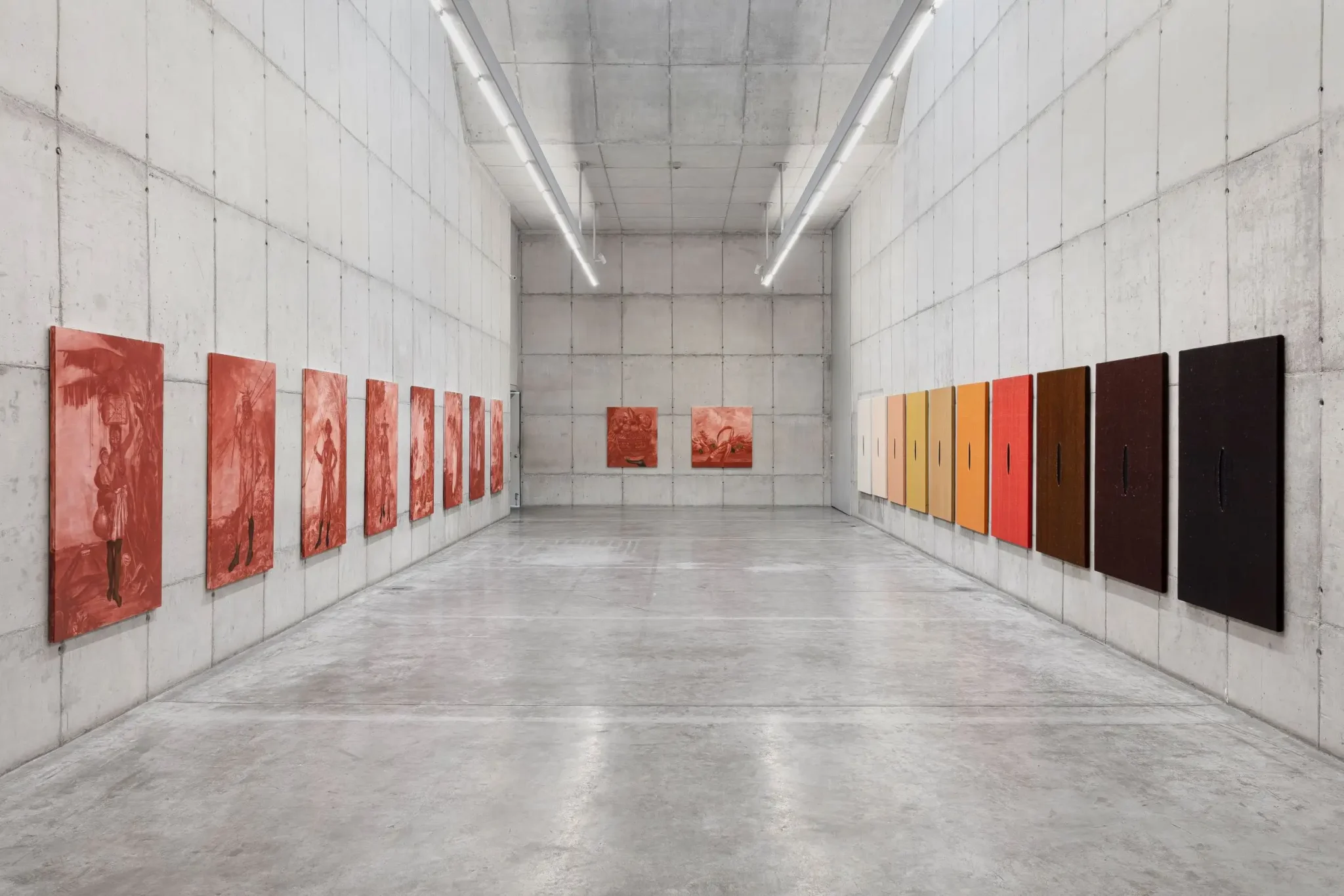É este caráter documental, que Gamarra tensiona em suas releituras. Ao aplicar diferentes tratamentos à pintura – ora detalhes a óleo, ora manchas avermelhadas – a artista retira a veracidade que outrora fora concedida a estas imagens e as coloca em questão. O gesto da artista denuncia o desenvolvimento e o progresso como narrativas, construções sociais, que ao serem apresentadas como sinônimos da verdade, escondem concepções de mundo.