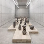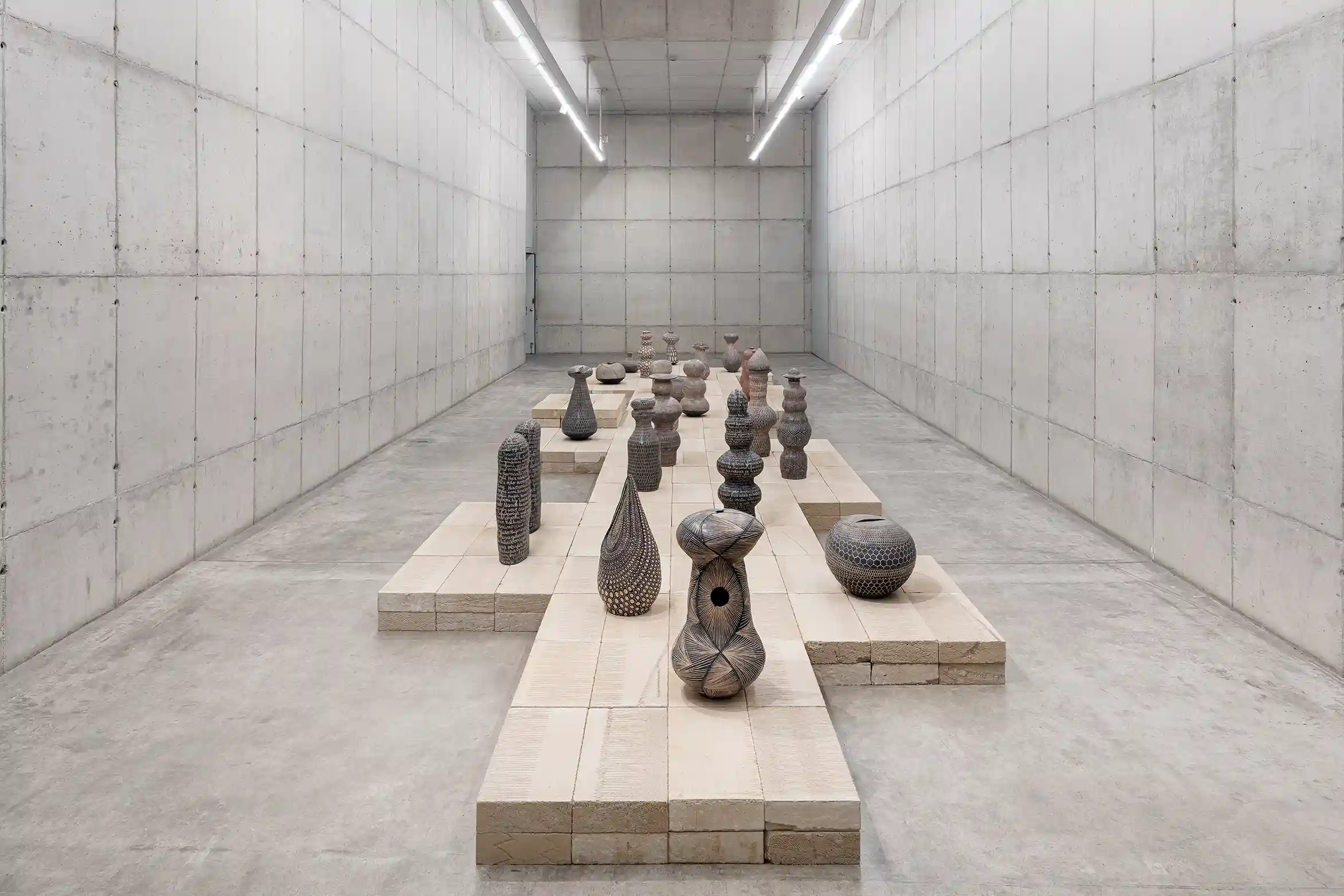 Em obras como “Cabezas exiliadas I”, o artista vai ainda mais longe nessa investigação. Enciso grava no corpo da escultura trechos escritos que narram cosmologias guaranis sobre a criação do mundo, da palavra e do vínculo entre humanidade, natureza e o divino. No entanto, o que está subjacente a isso é o fato de que o guarani não é uma língua que obedece aos padrões de escrita ocidentais, sendo necessária uma tradução para o que se chama de “guarani paraguaio”. Essa passagem de uma tradição oral para um registro escrito, sustentado por um alfabeto alheio à essa tradição, se constitui com um exercício de idas e vindas entre o conservar de uma cultura através da escrita e, justamente por isso, um processo de aculturação. Ao transpor esses trechos para o corpo da escultura, o artista justapõe por um lado a força da oralidade presente nesses mitos e também no próprio saber cerâmico a que se dedica com o desejo pelo registro e pelo arquivo, tão incensado dentro de uma prática historiográfica mais ocidentalizada.